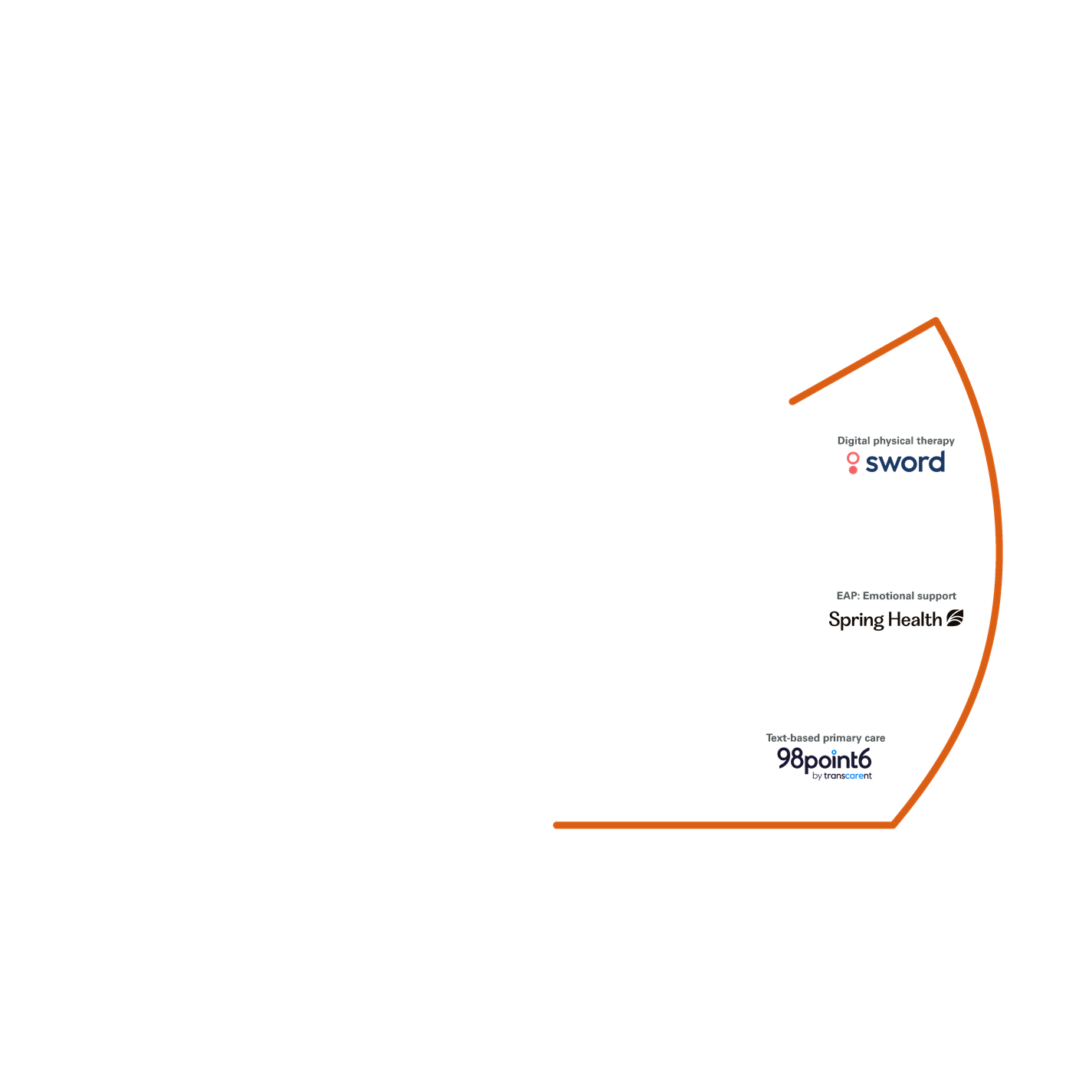 The Employee Assistance Program (EAP) from Spring Health, a partner of 98point6 by Transcarent® connects members with qualified experts who will give personalized guidance and helpful advice based on each unique situation. Members and their household members age 13+ may qualify for six coaching sessions and members age 6+ may qualify for six therapy sessions per year, at no additional cost.